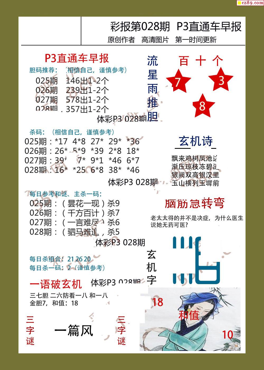 > 直通车早版028期体彩p3图谜