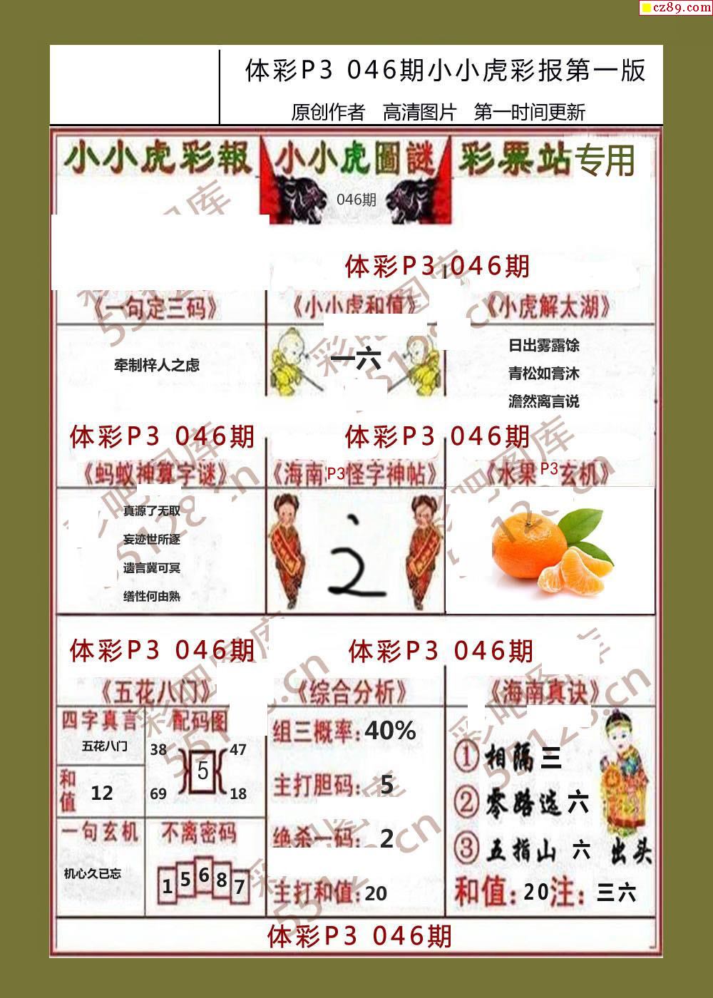 首页 > 排列3图谜 > 小小虎彩报046期体彩p3图谜